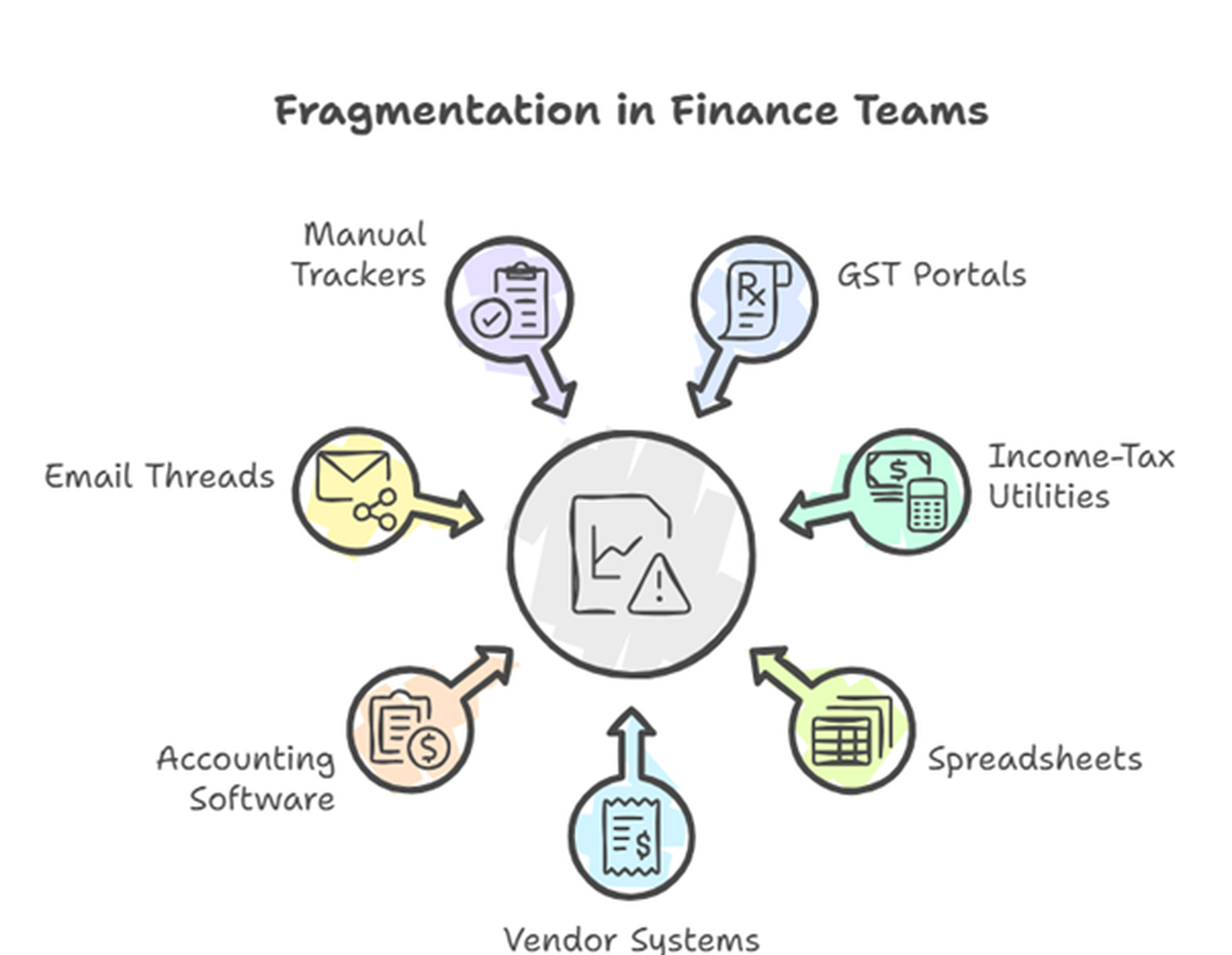 GST portals, income-tax utilities, spreadsheets, vendor systems, accounting software, email threads—this fragmentation creates risk, duplication, and loss of visibility.